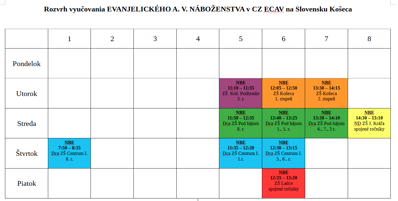 Vyučovanie NBV - evanjelické a. v. v školskom roku 2025/2026